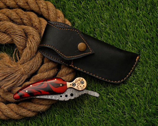 Custom Hand Forged Damascus Folding Knife Camping folding blade Handcrafted Damascus steel folding Knife with Resin Handle