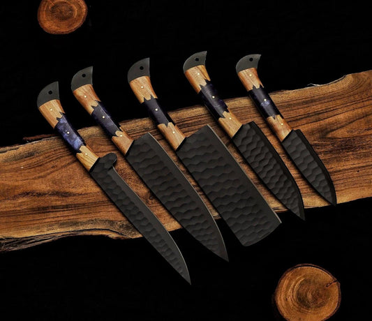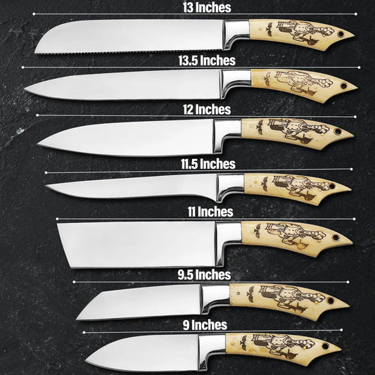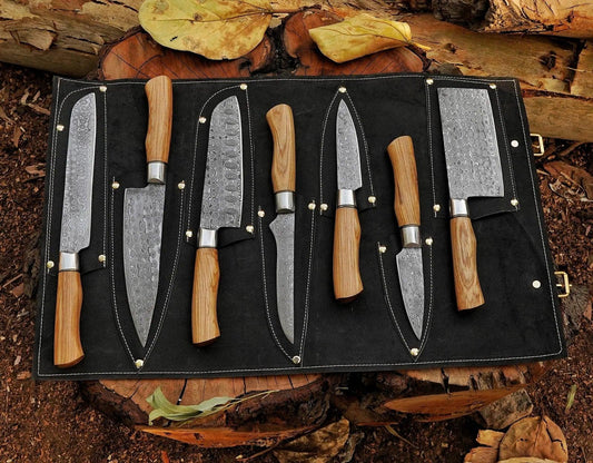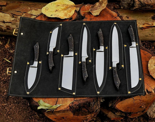 7-Piece Hand-Made J2 Steel Knives Chef Set, Kitchen Knives Set, Steel Knife Set with Leather Sheath Custom Beautiful Handle