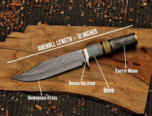 10" Unique Handmade Damascus steel Knife-Hunting Knife with leather sheath